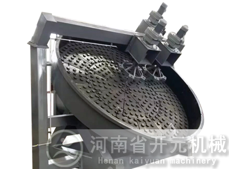 圓盤造粒機(jī)是有機(jī)肥行業(yè)的常用設(shè)備之一,一般適用于中、低濃度,小規(guī)模的生產(chǎn),成球盤調(diào)整到40°-55°之間。由電機(jī)減速機(jī)帶動(dòng)齒輪從而加入混配好的原料肥。由于粉肥和圓盤旋轉(zhuǎn)而上升,又在重力的作用下向下滾動(dòng),在以上幾種力的作用下,盤內(nèi)物料逐漸形成基核直至達(dá)到成品顆粒,由圓盤邊溢出。本機(jī)具有成球率高、顆粒圓潤(rùn)、強(qiáng)度大、防腐、操作直觀、維修方便等特點(diǎn)。