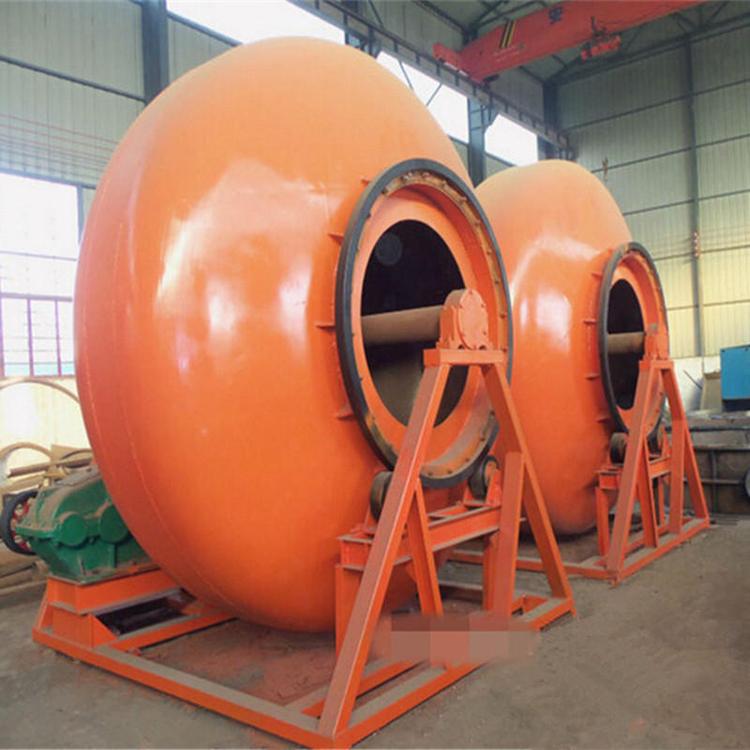 鍋式制粒機(jī)的工作原理是傳動(dòng)裝置通過過橋裝置帶動(dòng)筒體旋轉(zhuǎn),且筒體軸線與水平面呈特定夾角;當(dāng)粉料通過進(jìn)料口加入筒體內(nèi)后,開始向筒體內(nèi)部噴水,濕潤(rùn)的粉料在翻滾的同時(shí),逐漸形成球核,表面濕潤(rùn)的球核在不斷翻滾、摩擦、碰撞下,逐漸長(zhǎng)大成粒,當(dāng)粒徑達(dá)到要求時(shí),通過卸料門將其卸下。